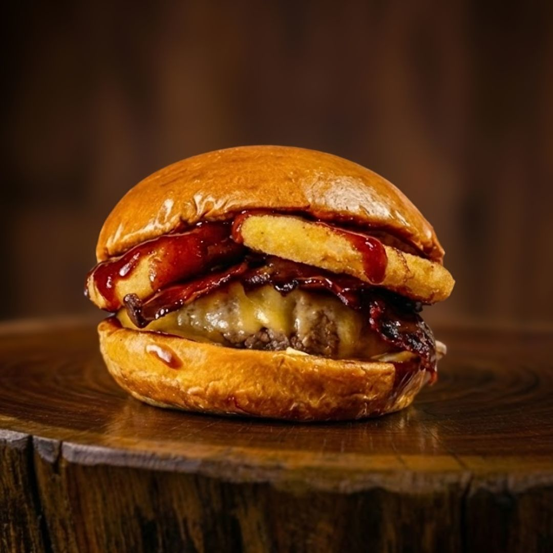 Com hambúrguer suculento, bacon crocante "top do mundo" e onion rings de arrasar, é de "lamber os beiços". Tudo isso abraçado pelo pão de brioche , com molho barbecue e maionese "feita na casa". Sabor que não acaba mais!