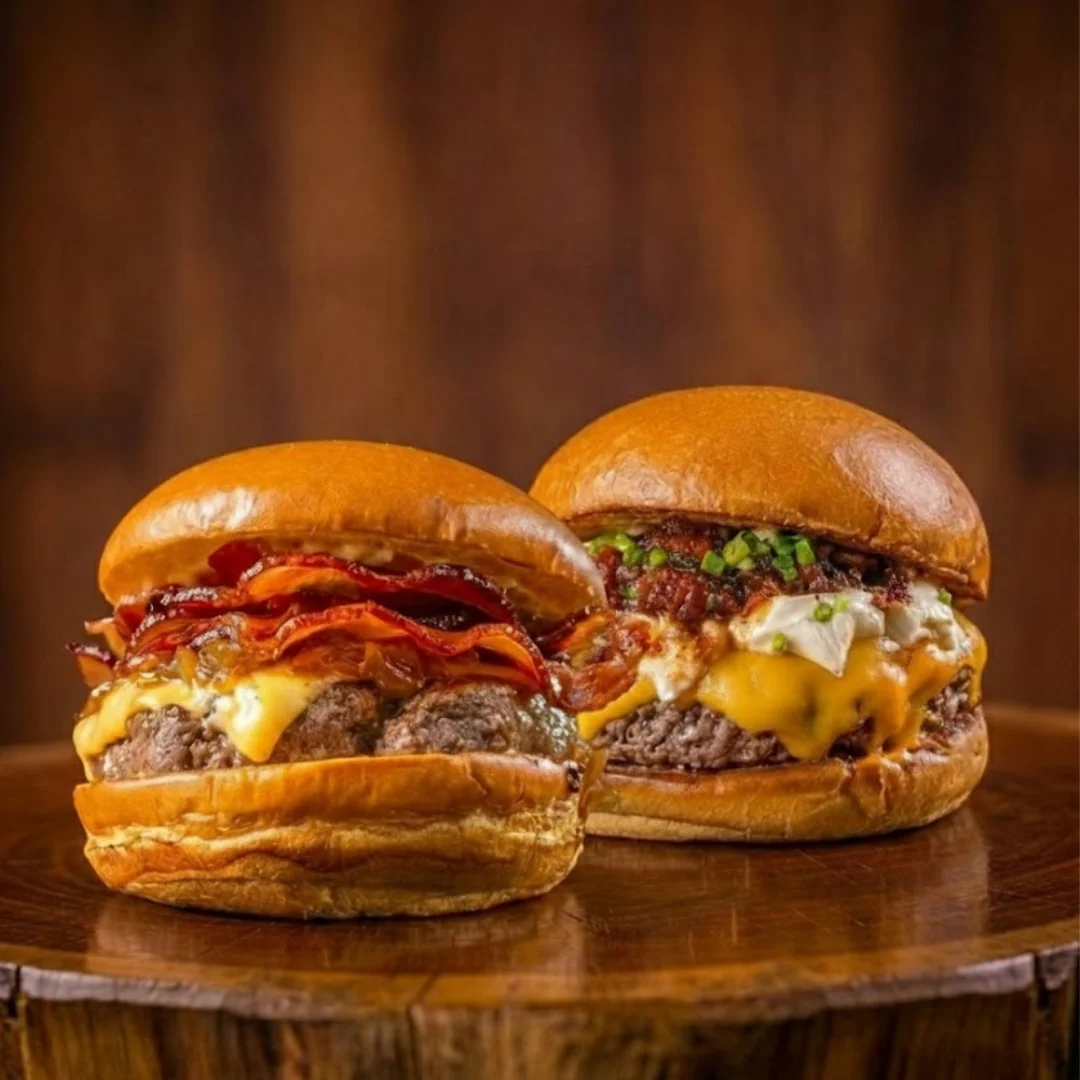 🍔 Cheese Bacon: hambúrguer blend bovino 180g + bacon super crocante + cebola caramelizada (cozida ao fogo lento, sem pressa) + queijo derretido + pão brioche tostadinho + a nossa maionese caseira.