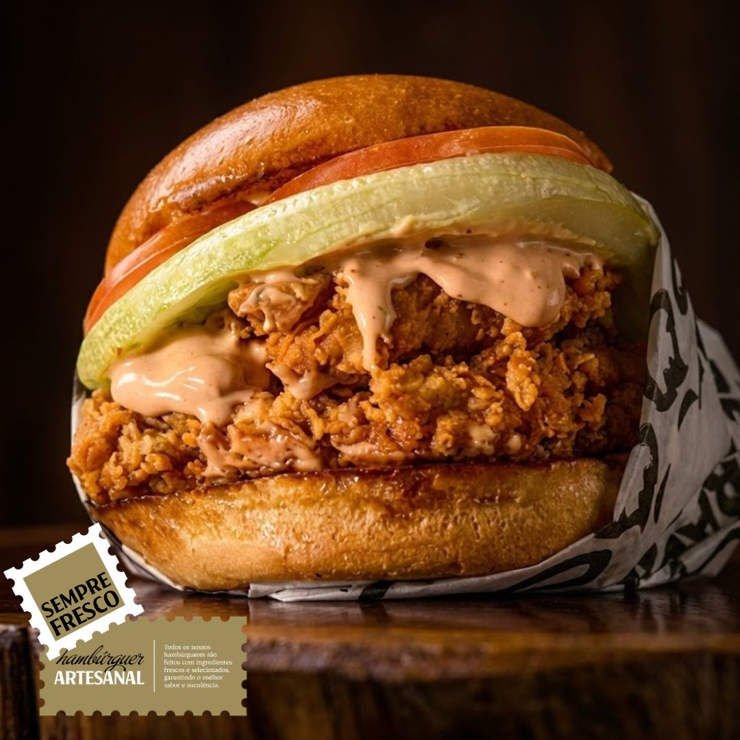 ✌, isso mesmo, 2 suculentos pedaços de filé de frango empanados e crocantes, acompanhados pelo nosso molho rosé especial. Acrescentamos alface fresca e tomate para dar aquele toque refrescante. Tudo isso servido no nosso pão tradicional tostado.