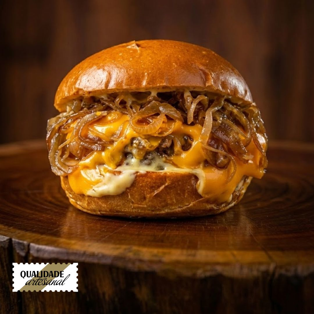 Fusão de sabores, com hambúrguer blend bovino de 180g que é pura suculência, e cheddar derretido que é um abraço cremoso. A cebola caramelizada adiciona um toque agridoce e a maionese caseira é o toque final. Sabor que é uma verdadeira celebração! 🍔🤤